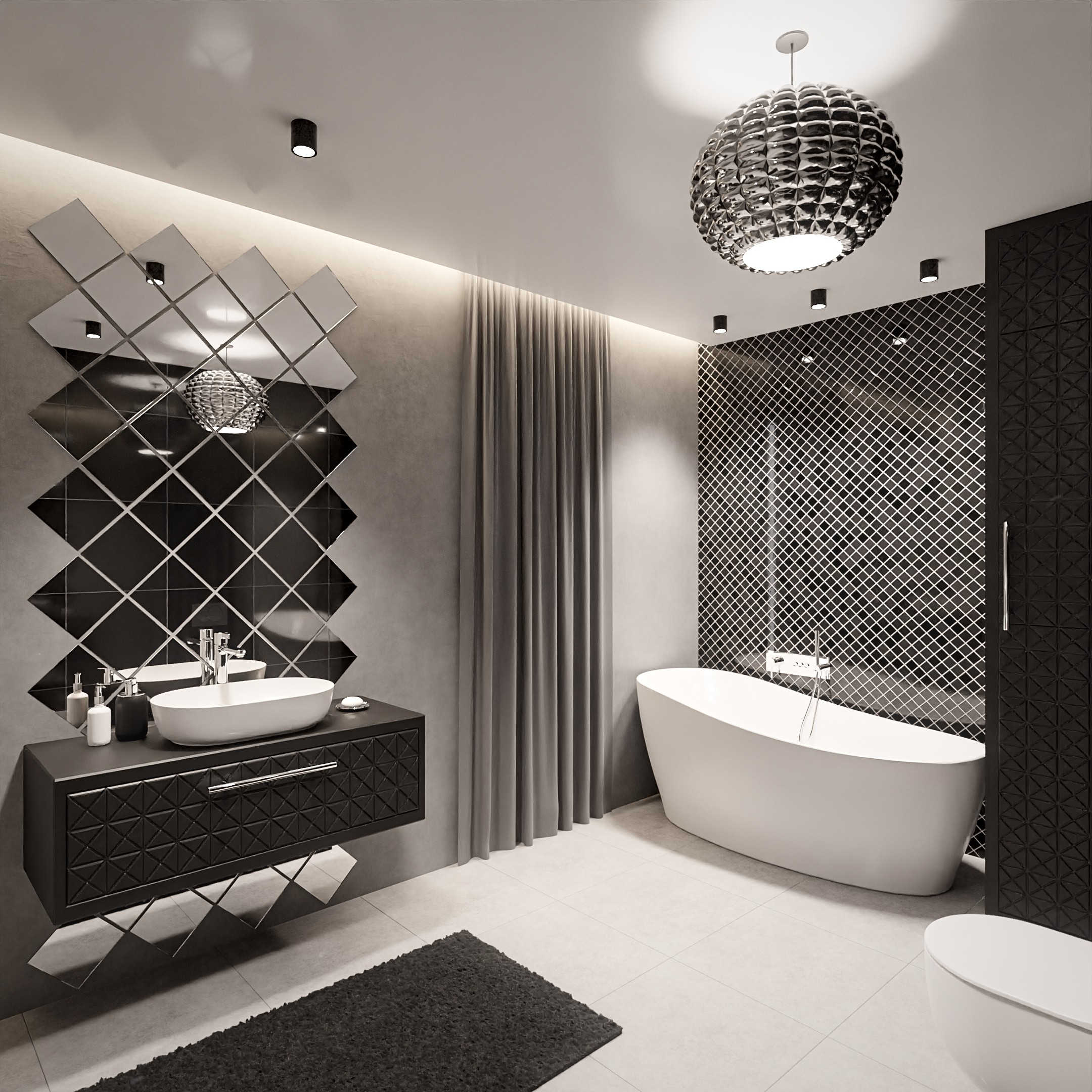 • Salle de bains: Dans cette pièce, nous avons deux possibilités d’utiliser des carreaux miroir.