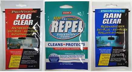 - Sachet avec lingette imprégnée de Rain Clear – un produit qui combine l’effet d’un essuie-glace invisible et d’une excellente protection des surfaces vitrées. Protège contre la formation de buée sur les vitres, miroirs et glaces.