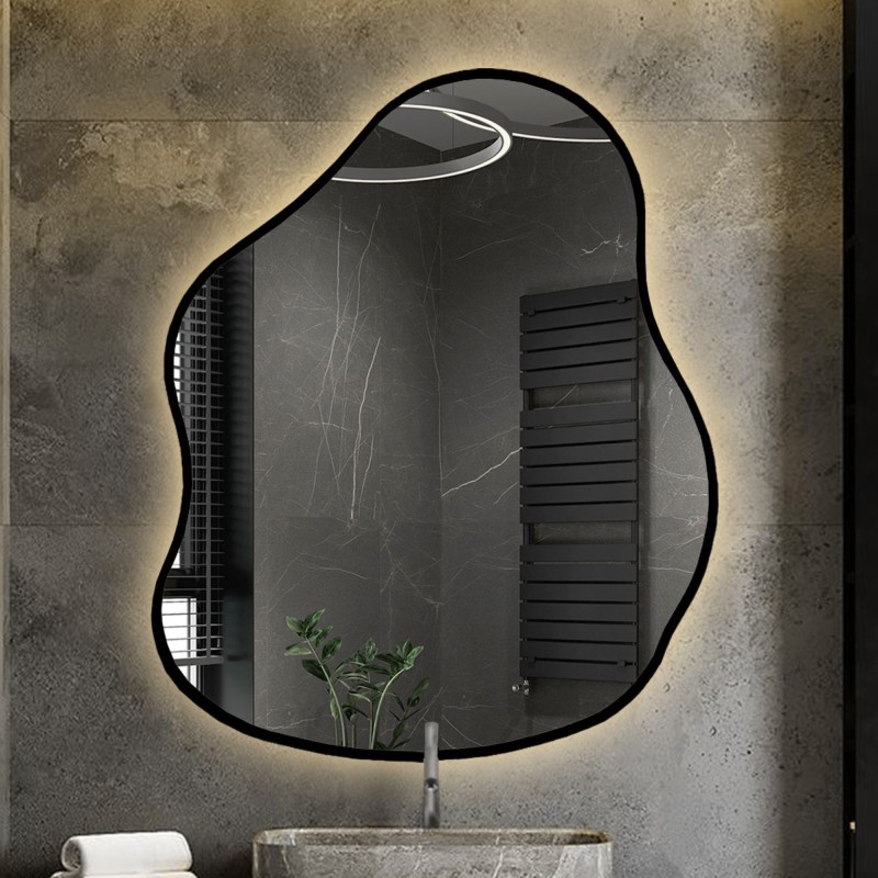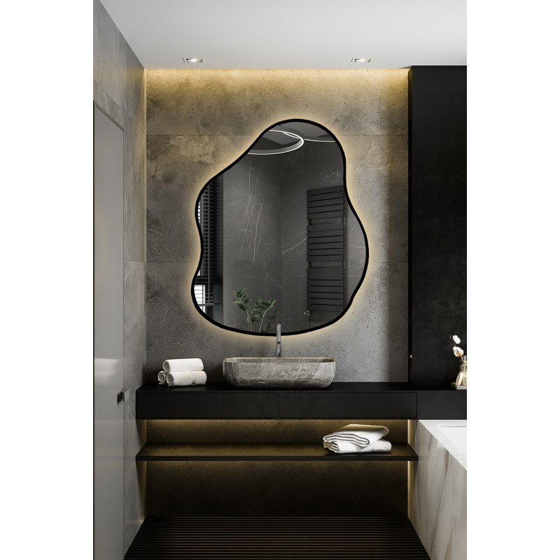 • Miroir de forme organique dans un cadre avec éclairage - STONE IN LED FRAME