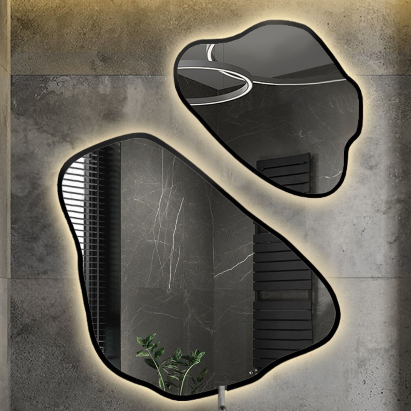 Jeu de miroirs de forme irrégulière dans un cadre avec éclairage - MORION IN LED FRAME