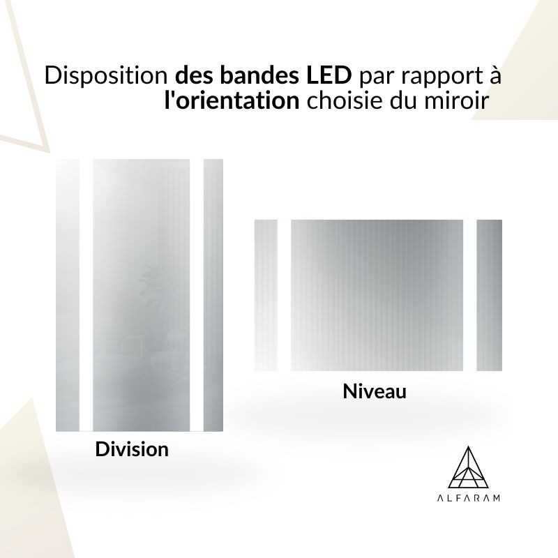 La densité de 60 diodes LED par mètre génère une lumière qui non seulement met en valeur les détails du miroir, mais crée également une ambiance unique dans la pièce. La lumière est suffisamment brillante pour accentuer efficacement le miroir et son environnement, mais pas assez intense pour éblouir ou gêner lors des activités quotidiennes.